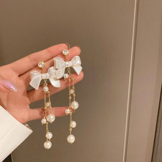 Pearl Drizzle Bow Earrings