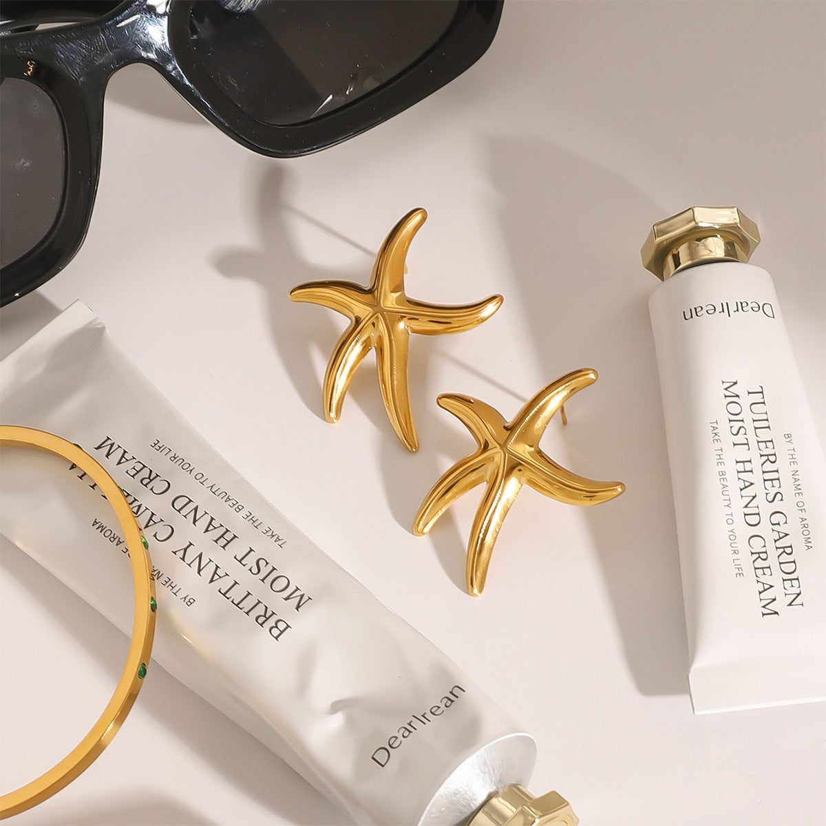Bring ocean vibes wherever you go with these chic Golden Starfish Stud Earrings. Inspired by coastal calm and summer radiance, these earrings are perfect for vacation outfits, beach brunches, and breezy resort looks.